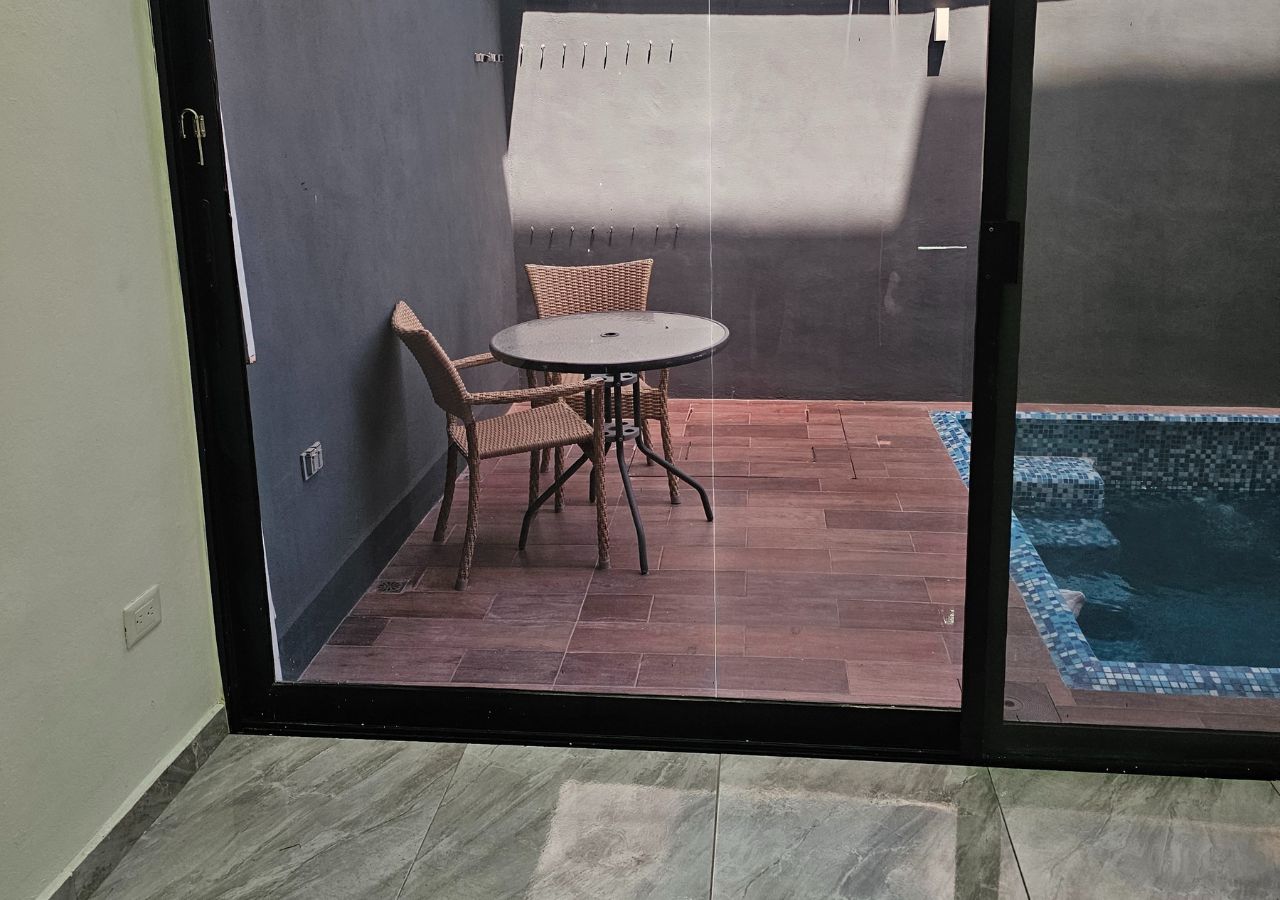 En planta baja cuenta con sala, comedor, cocina integral, medio baño, cuarto de lavado, alberca privada y cochera para dos autos.