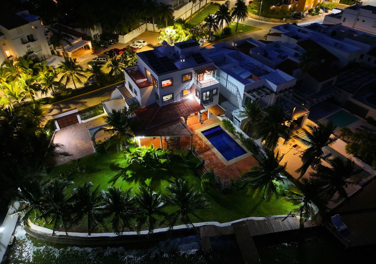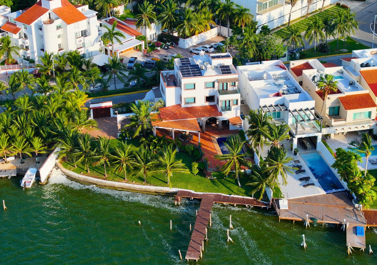Ubicada en la exclusiva zona de Pok Ta Pok, en el corazón de la Zona Hotelera de Cancún, esta espectacular residencia de lujo ofrece una combinación perfecta de diseño arquitectónico, seguridad y sostenibilidad. Con una construcción de 700 m² sobre un terreno de 1,100 m², la propiedad cuenta con una estructura anti-huracanes, barandales de aluminio anticorrosión, paneles solares para ahorro energético y un sistema de purificación de agua para toda la casa. Disfruta de un muelle privado con concesión vigente, amplios espacios y amenidades diseñadas para el confort y la exclusividad.